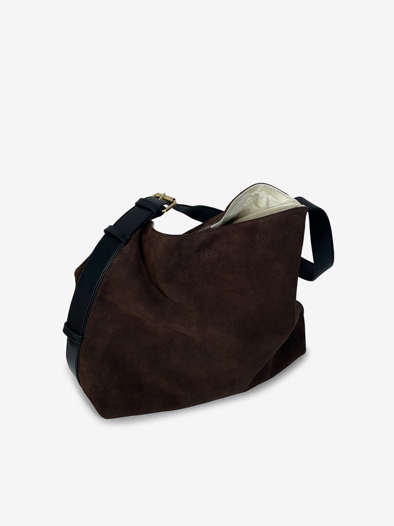 - Toteväska i mjukt suede läder med ett följsamt fall